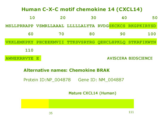 | CXC chemokine ligand 14 (CXCL14)/BRAK ELISA Kit, Recombinant, Antibody |