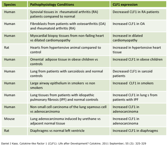 | CLCF1 is a secreted cytokine with B-cell stimulating capability. CLCF1 belongs to IL-6 superfamily. CLCF1 binds to and activates the ILST/gp130 receptor. It predominantly expressed in lymph nodes, spleen, peripheral blood lymphocytes, bone marrow, and fetal liver. CLCF1 and CTNF are two natural ligands for CTNF Receptor. Muation of CLF had been identified on cold-induced sweating syndrome type 2 (CISS2) patients. |